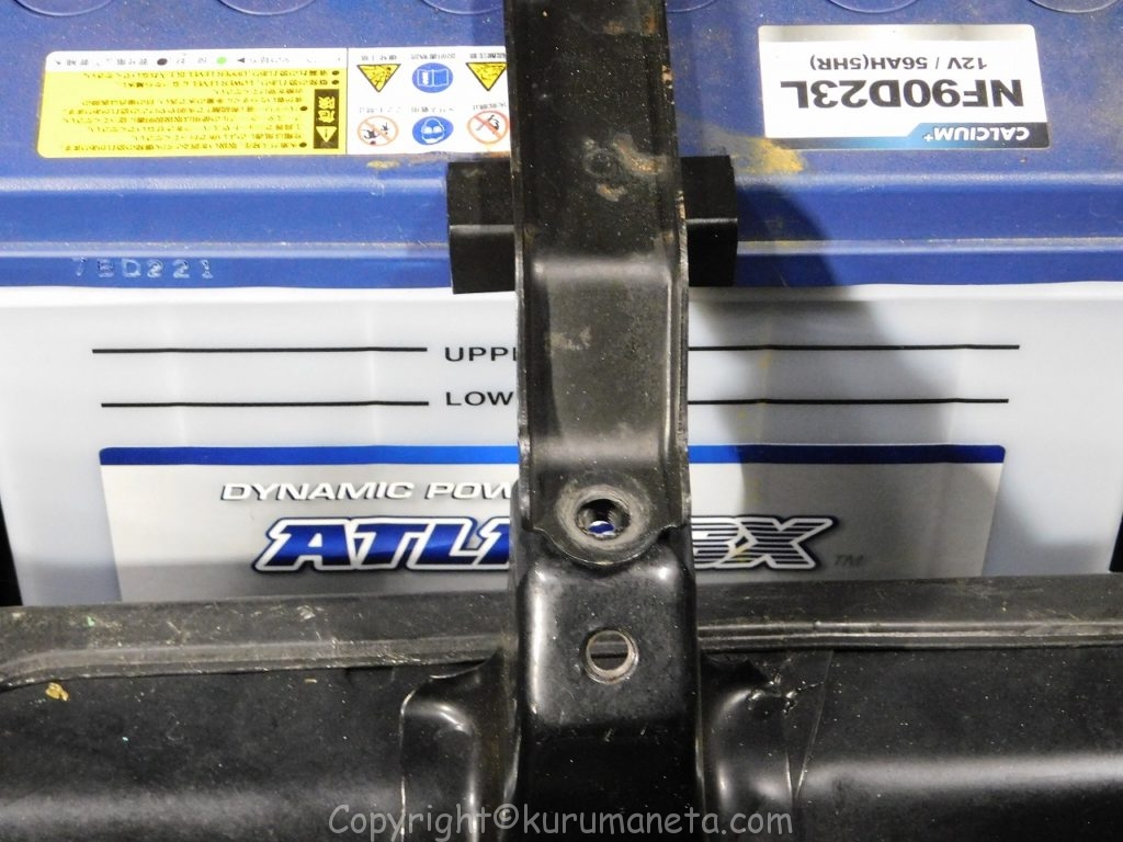 順番としてはバッテリーを固定しているステーを外して、マイナス端子⇒プラス端子の順番で外していきます。