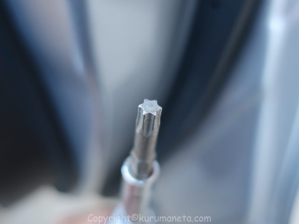 目くら蓋を外すとなかに星形のトルクスネジがあるので、トルクスドライバーを使って取り外します。