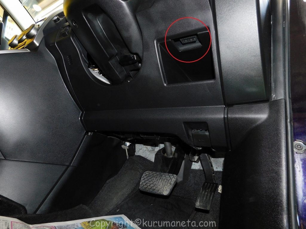 この型のプレマシーのOBD2カプラー端子は写真の位置にあり、分かりやすいです。