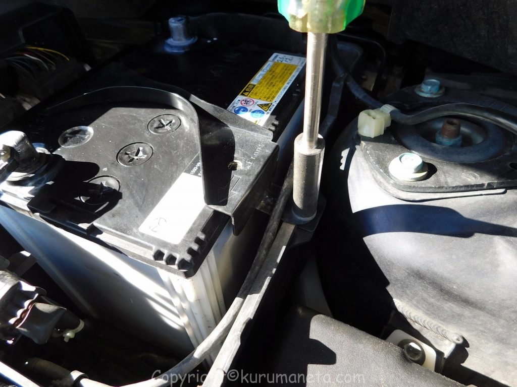 バッテリー端子を外す時はマイナス端子を外してからプラス端子を外します。