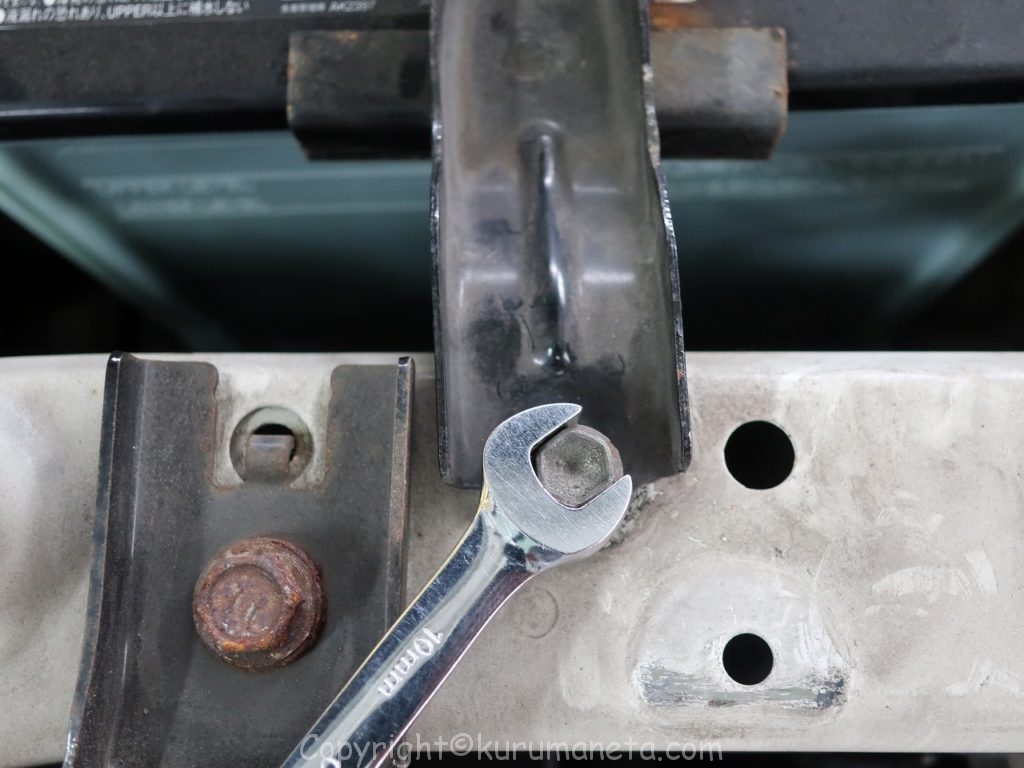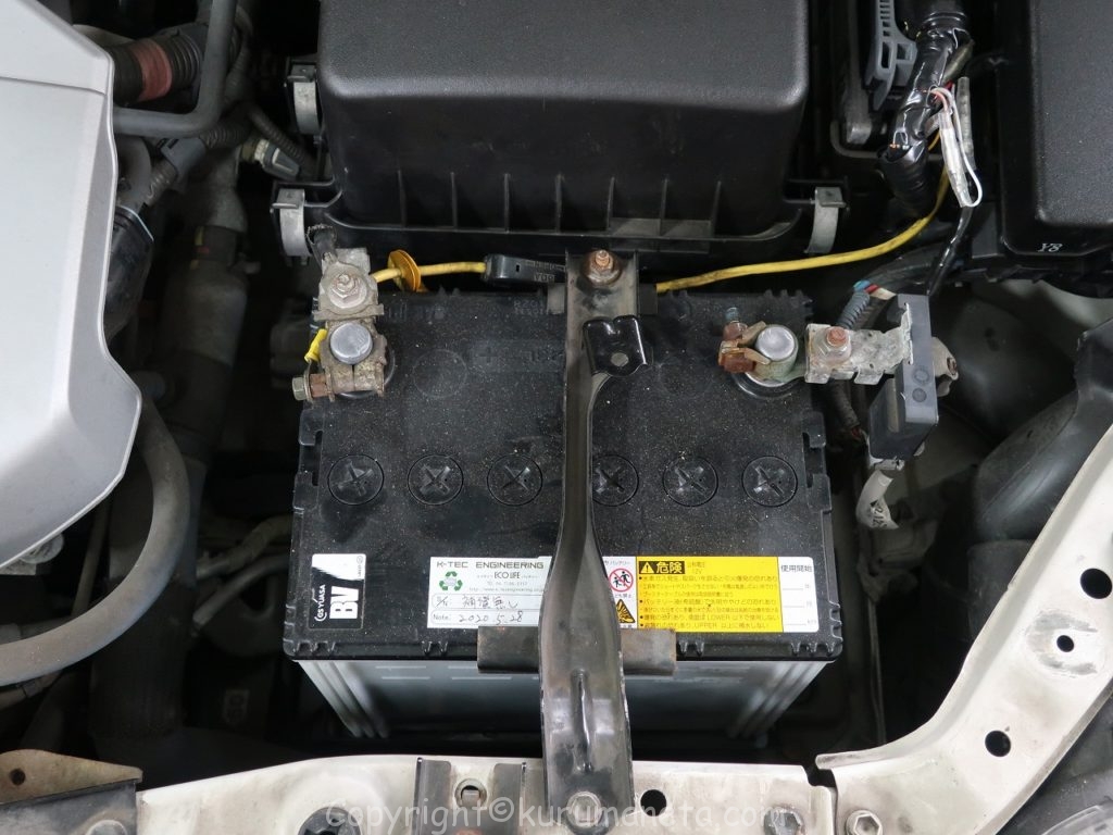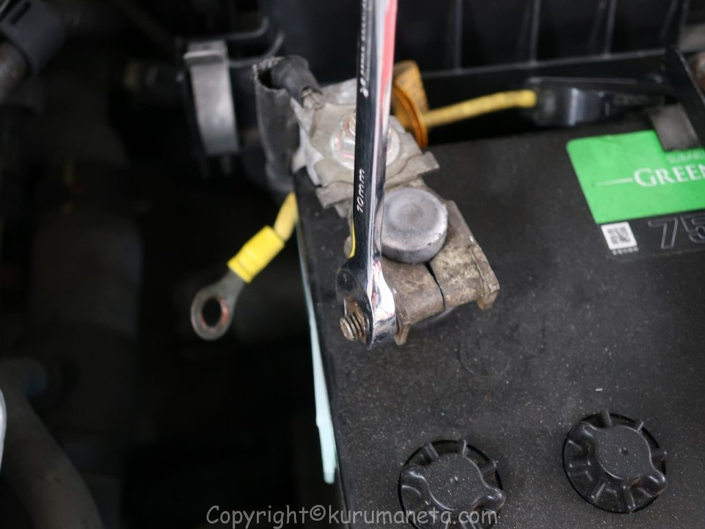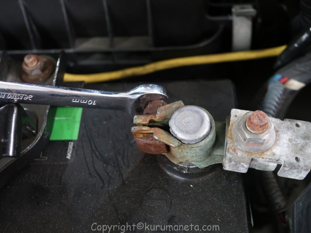 バッテリーはエンジンルーム手前にありますが、カバーが被っているので外す必要があります。