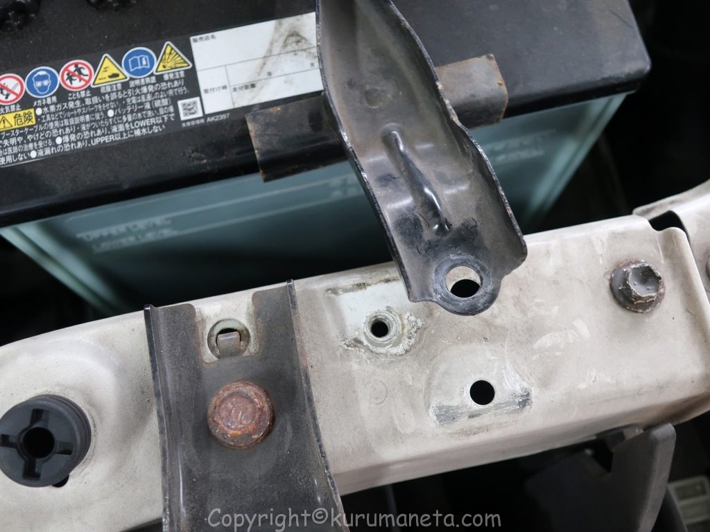バッテリーは重量がありますので取り出す時に腰を痛めたり、落下による車体の損傷やケガに注意します