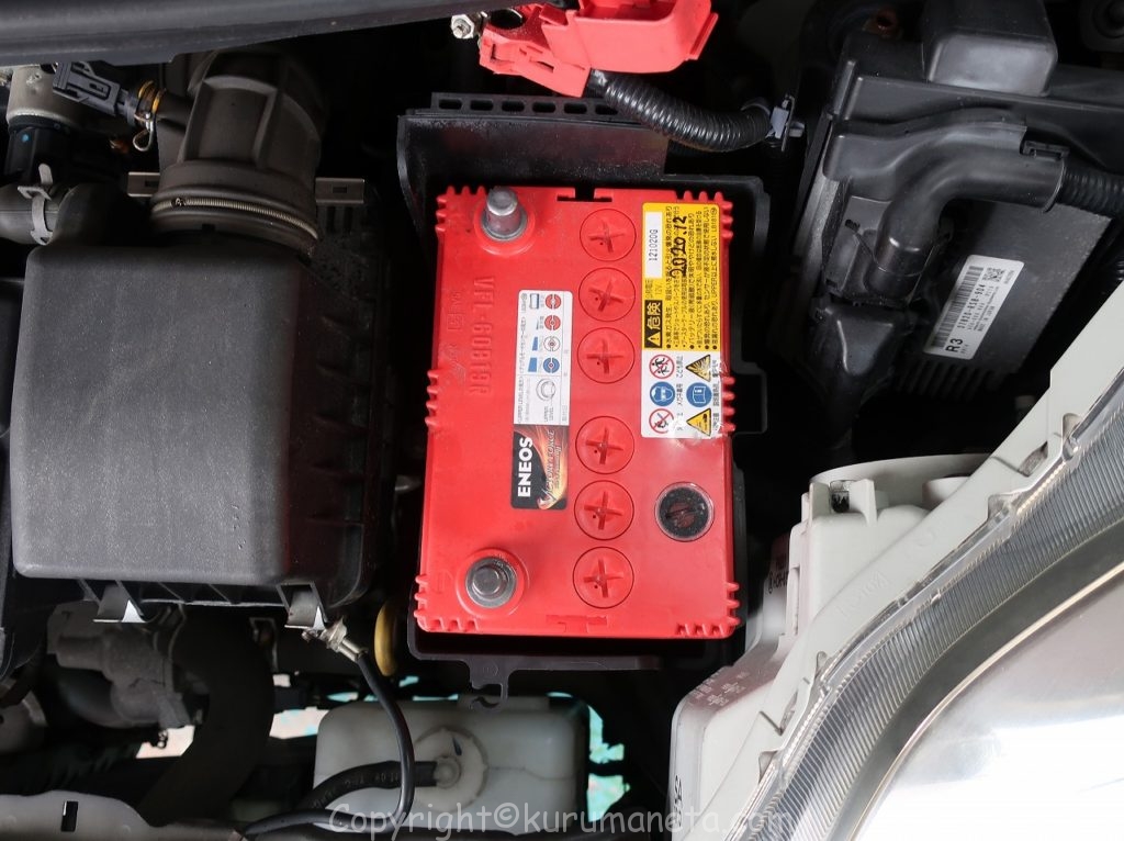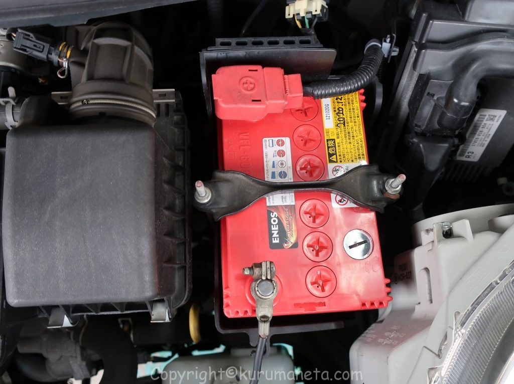 JC1ライフのバッテリーはエンジンルームの助手席側にあります