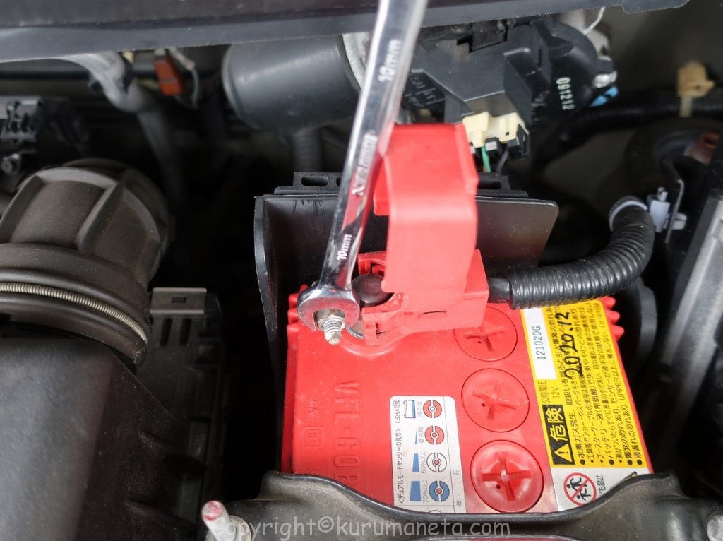 プラスは赤いカバーでおおわれているので、カバーを外してから作業します。