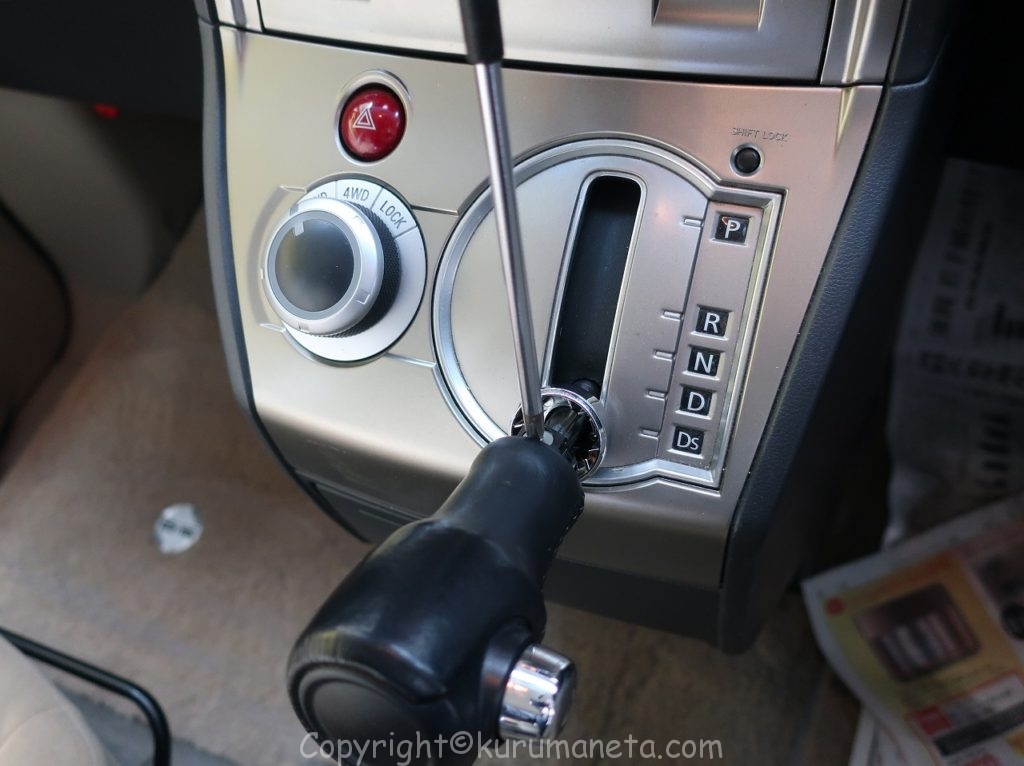 作業しやすいようにシフトロック解除してシフトを下げます。