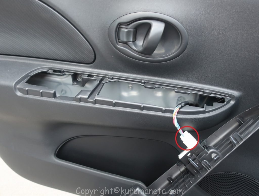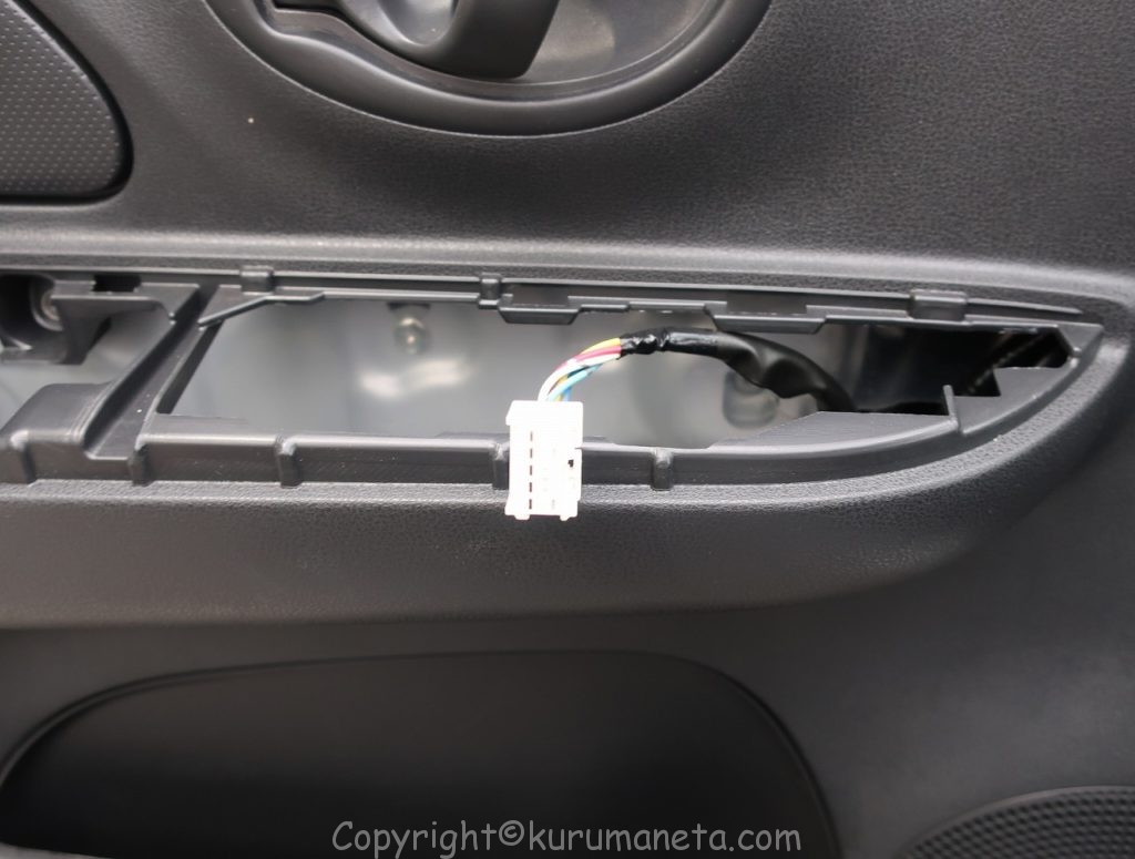 そのまま外すと、パワーウィンドウスイッチのカプラーが差さっているので外します。