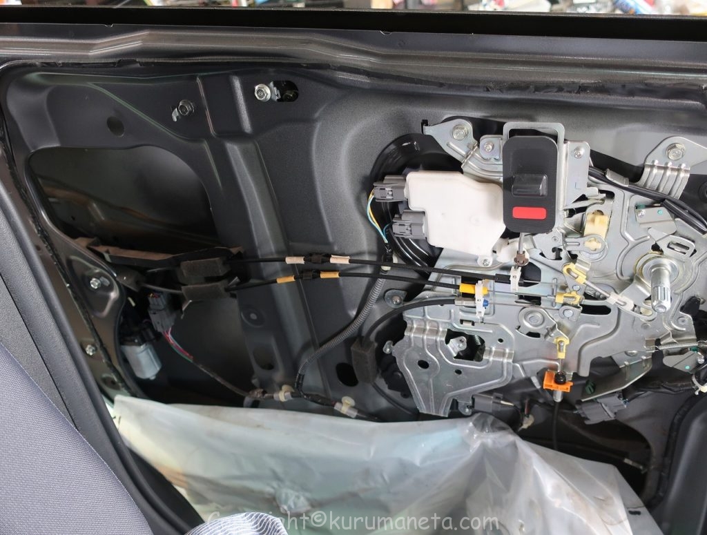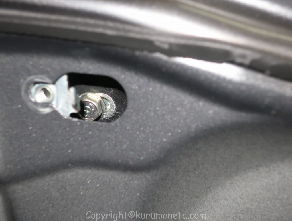 ※ドアパネル内部にボルト等落下させると隙間に入り取り出せなくなる可能性あるので注意します。