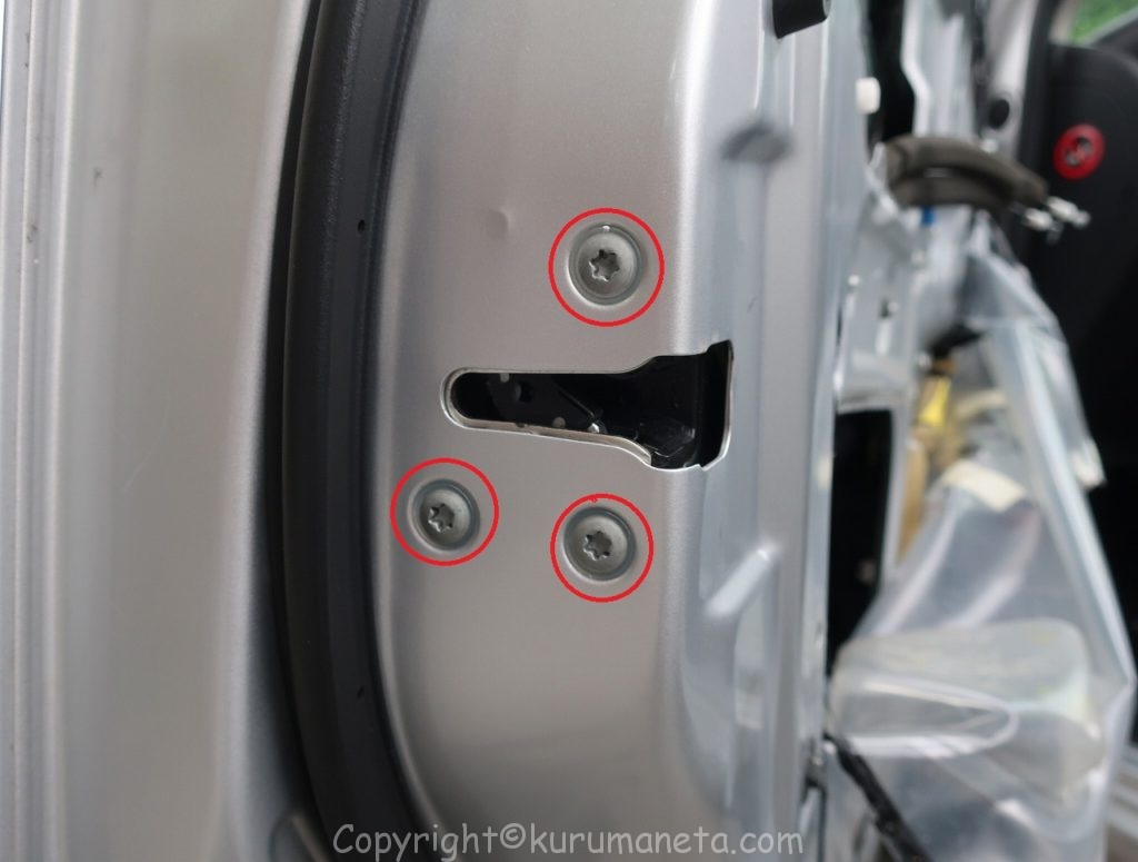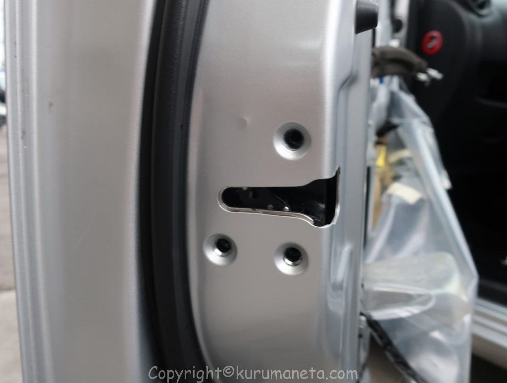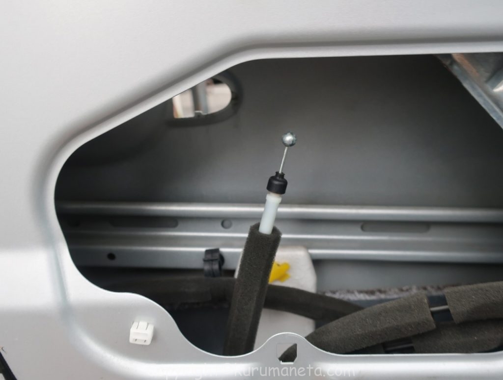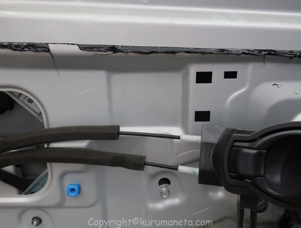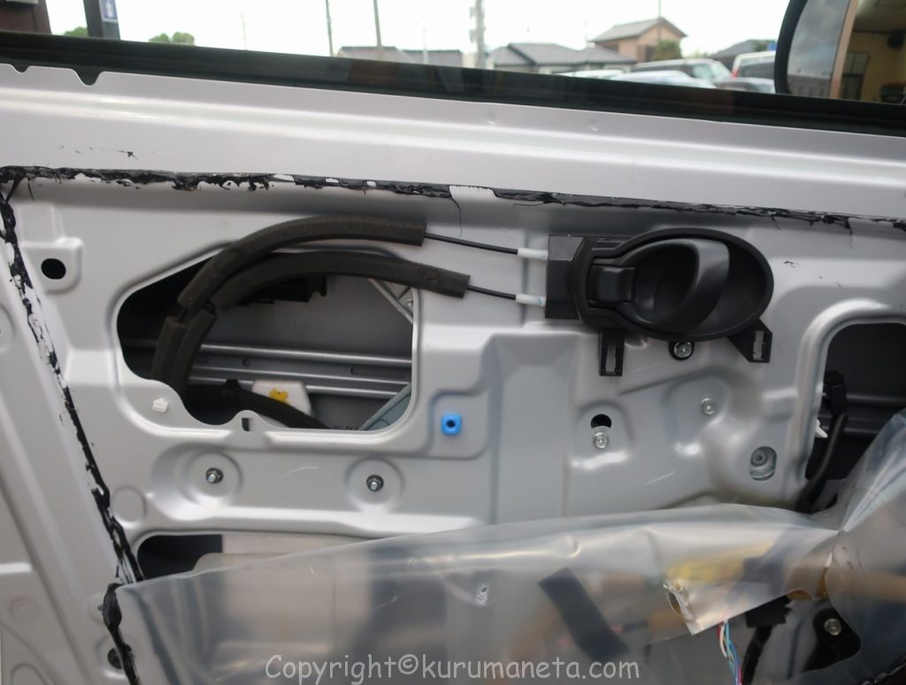 まずはドアトリムとドアアウターハンドルを外す必要があります。