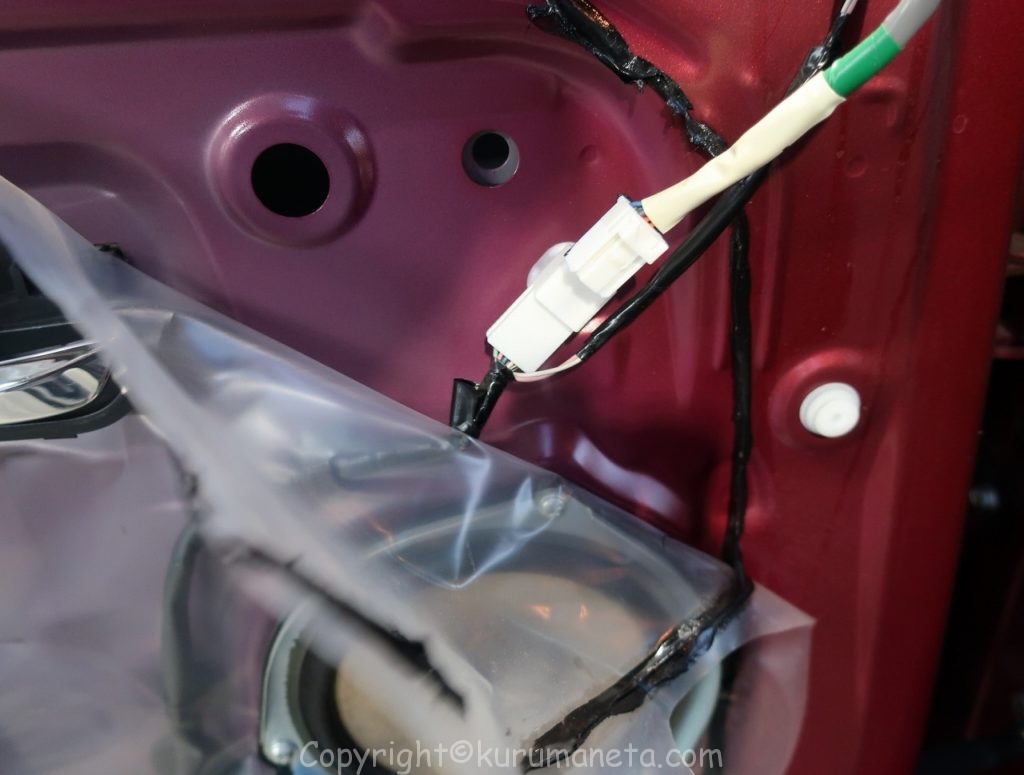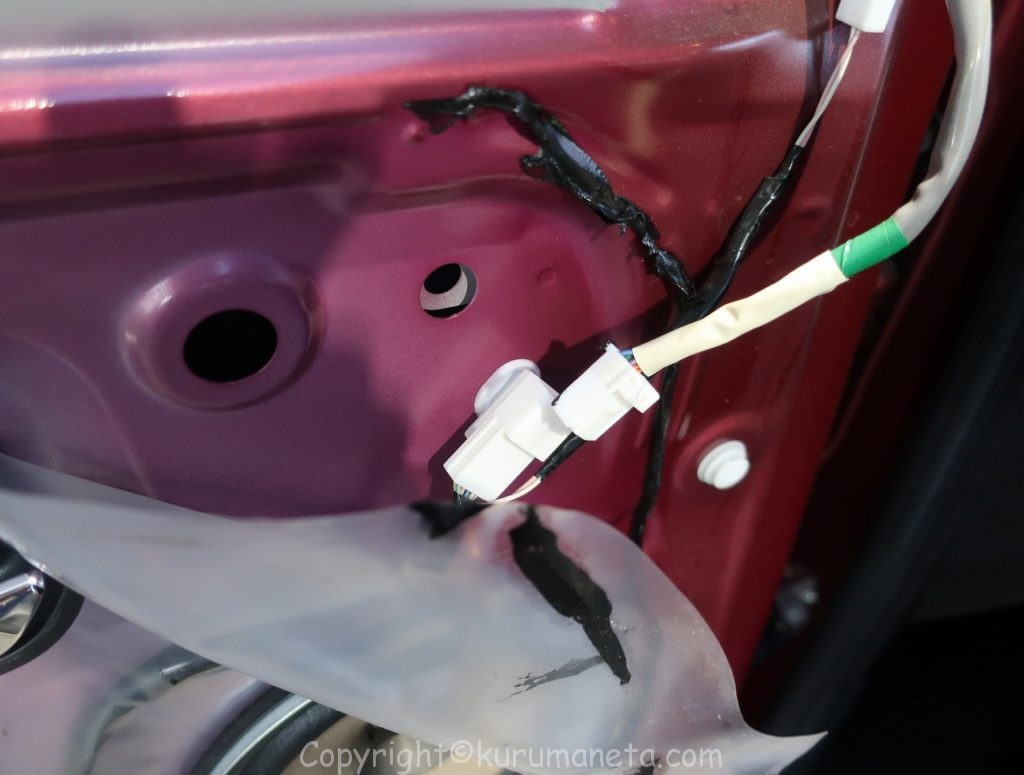 ドアミラーの配線カプラーを外します。