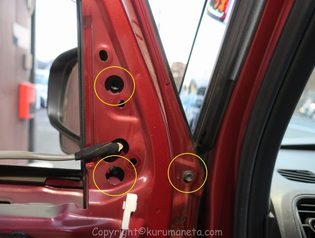 ドアミラーは3本のボルトで固定されています。