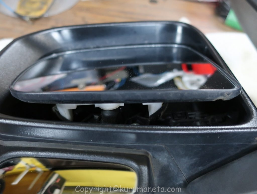 下はドアミラーレンズが外れた写真です。