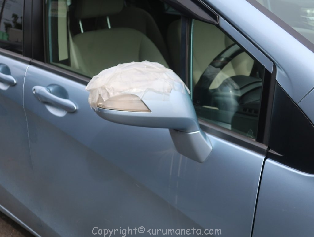 こちらの運転席側のドアミラーを交換します。