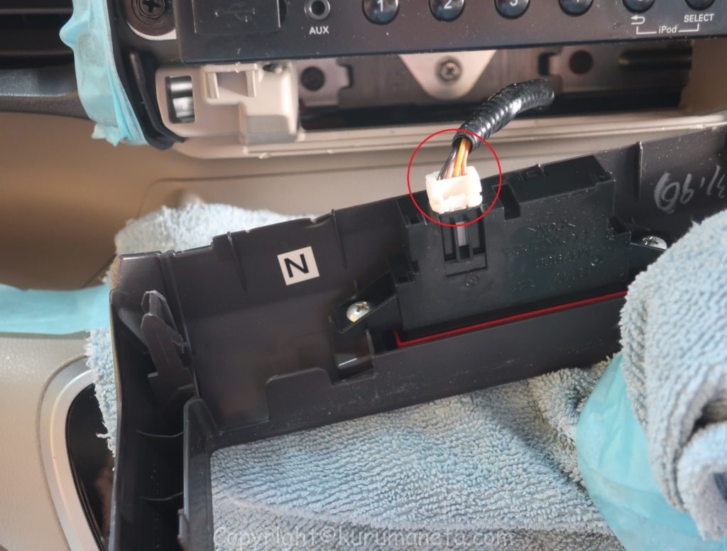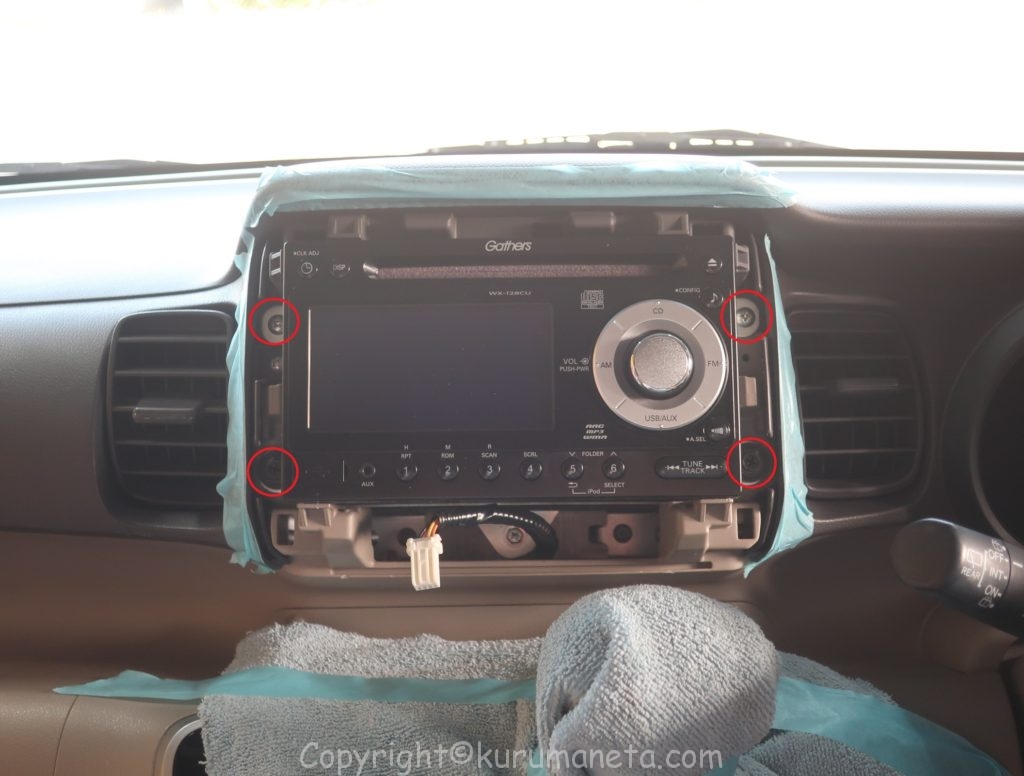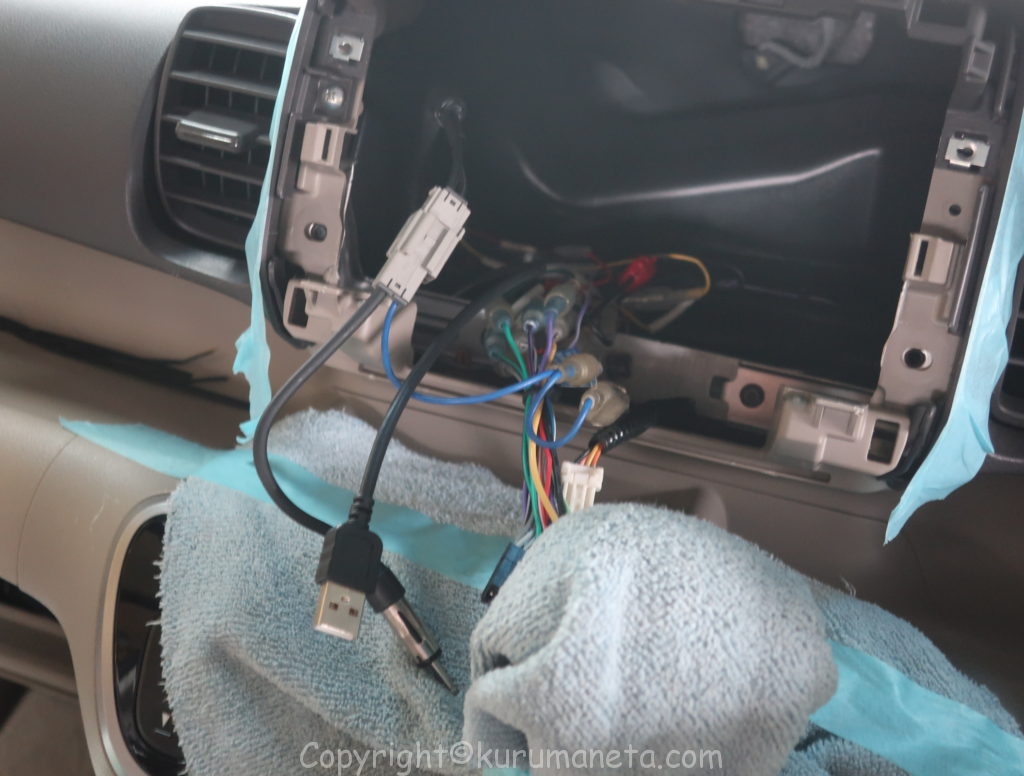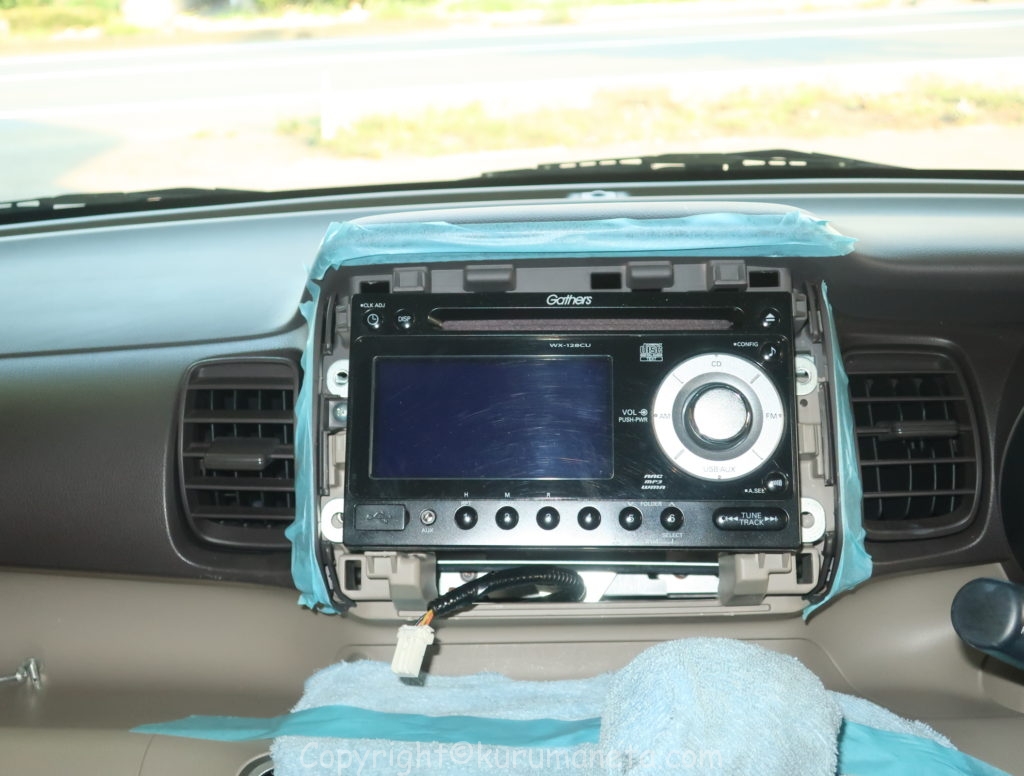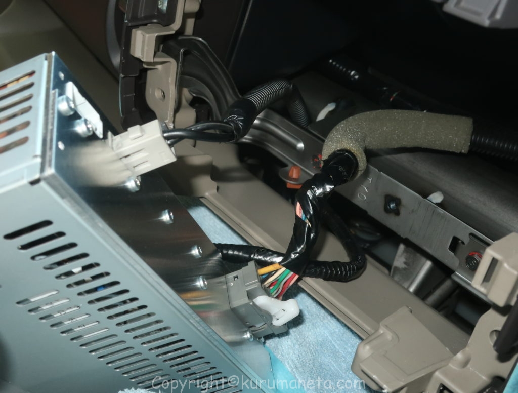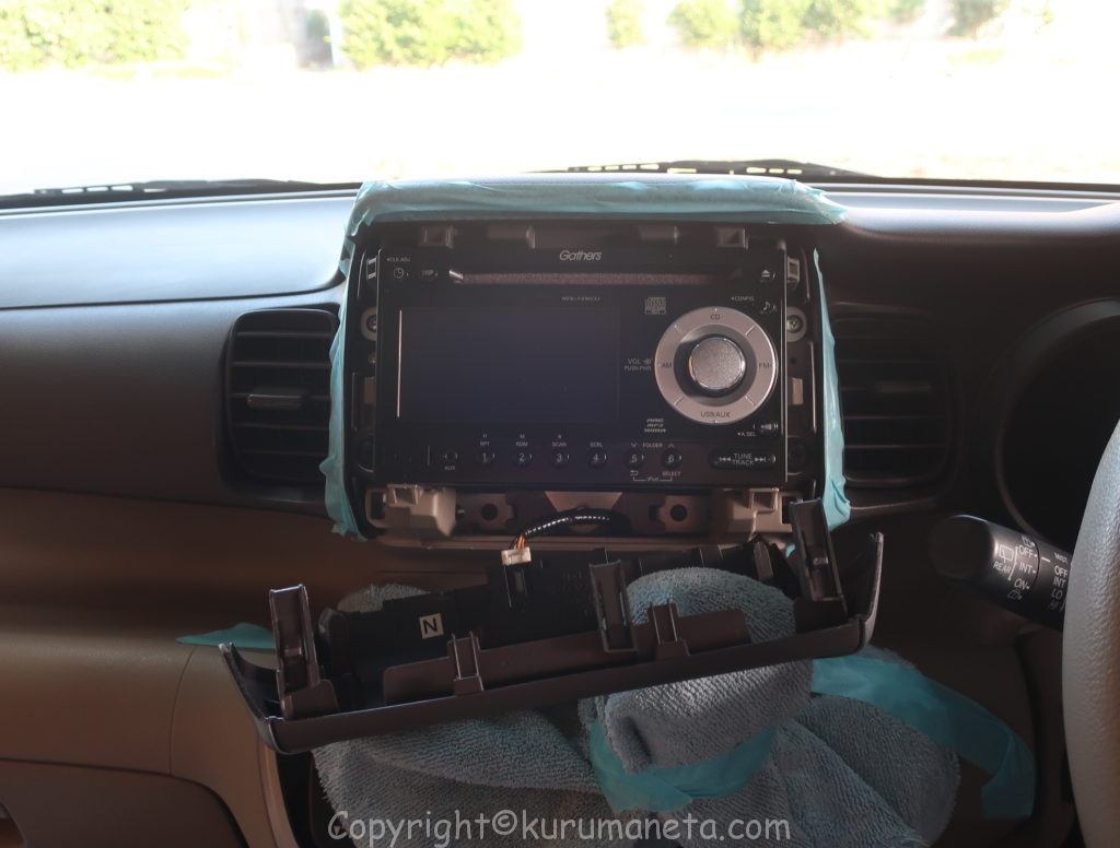 あとはオーディオを手前に引き出すと外れますので、裏側の電源カプラー、アンテナ配線等を外します。