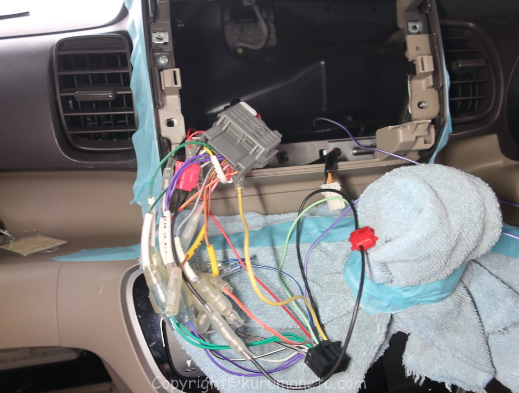 車両側のカプラーとオーディオの間に配線キットを挟んで接続します。