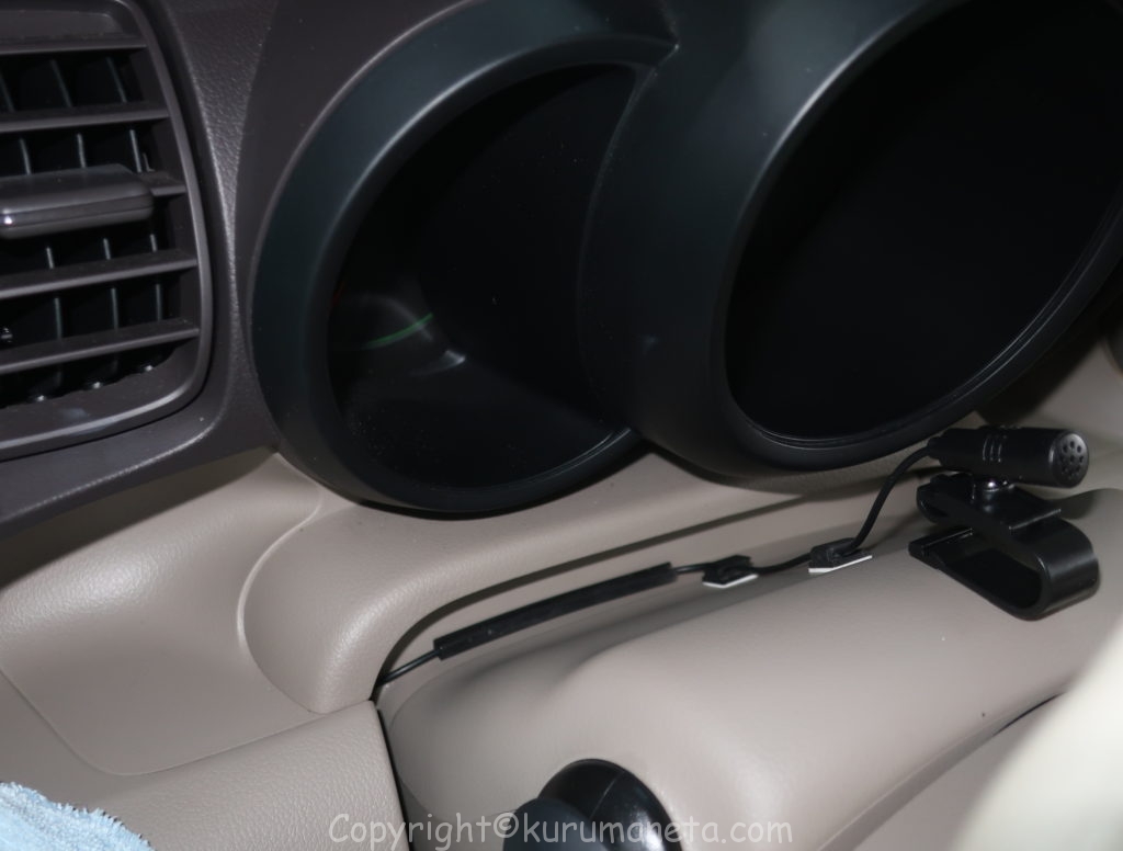 ハンズフリー通話用のマイクはハンドルコラムの上に設置しました。
