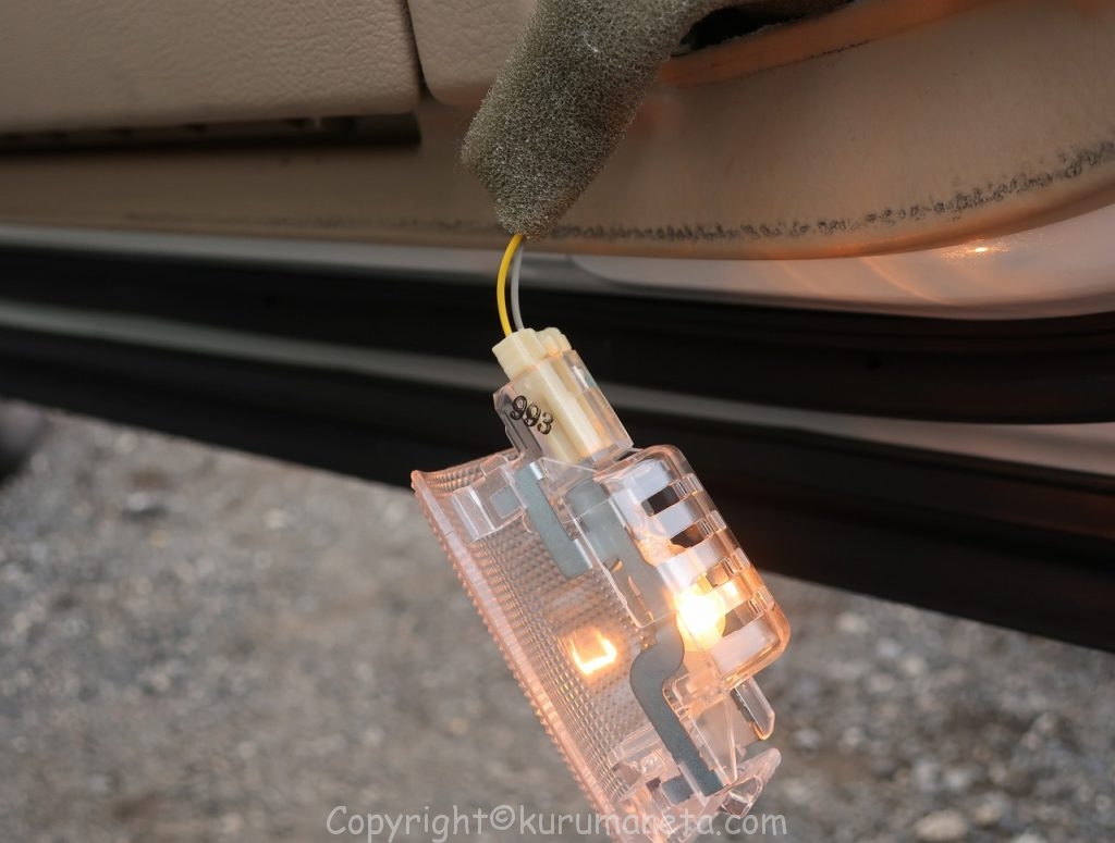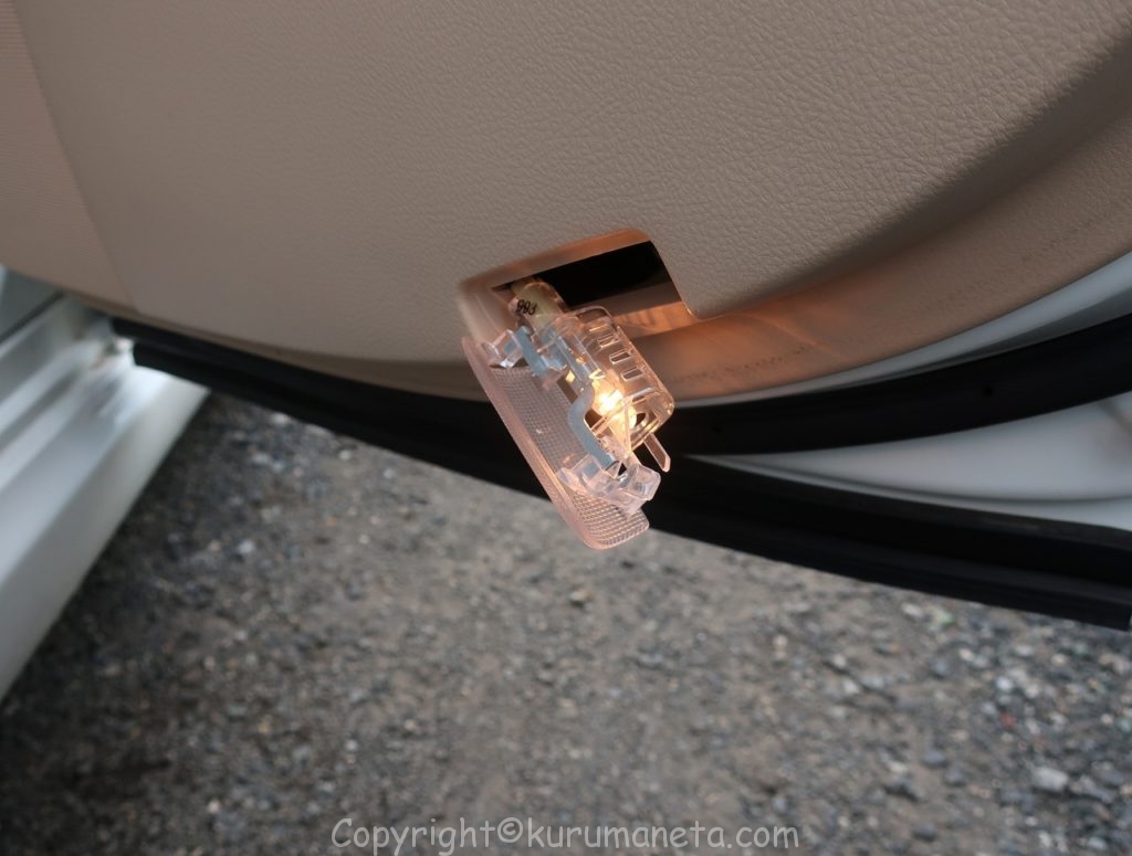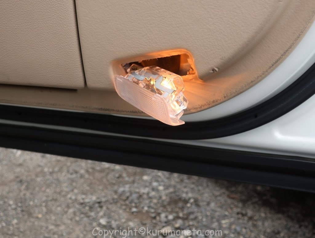 クラウンのドアについているカーテシランプ(ドアウェルカムライト)をLEDバルブに交換したので紹介します。