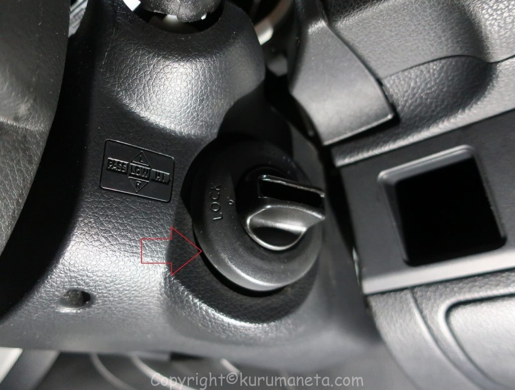 まずはステアリングコラムカバーを外しますので、赤丸のねじを外します。