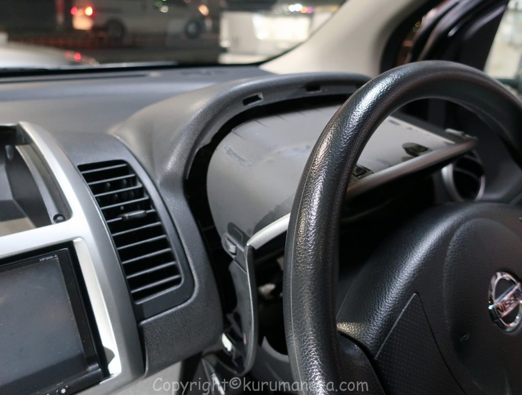 E11ノートのメーター交換にはピラートリム等を外してアプローチする方法もあるようですが、今回はこちらの方法で作業いたしました。ご参照ください。