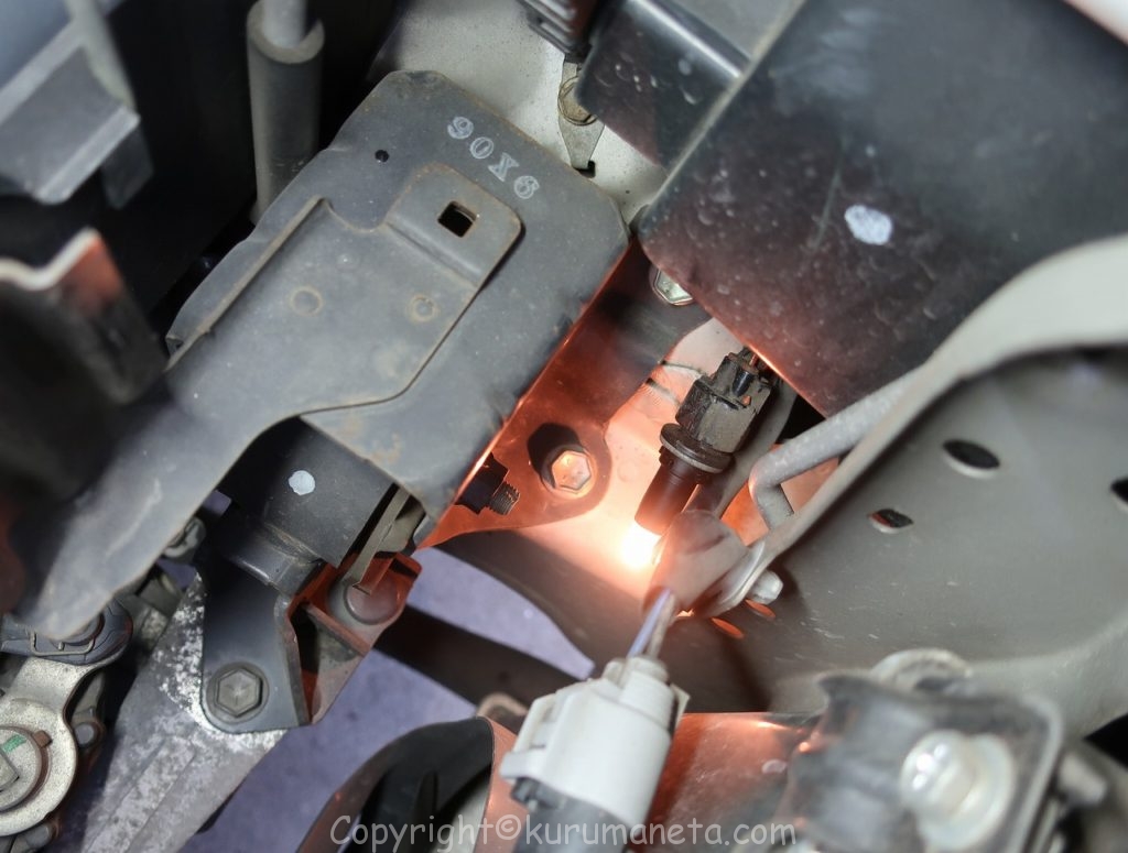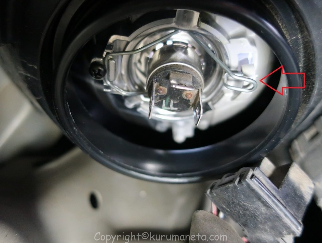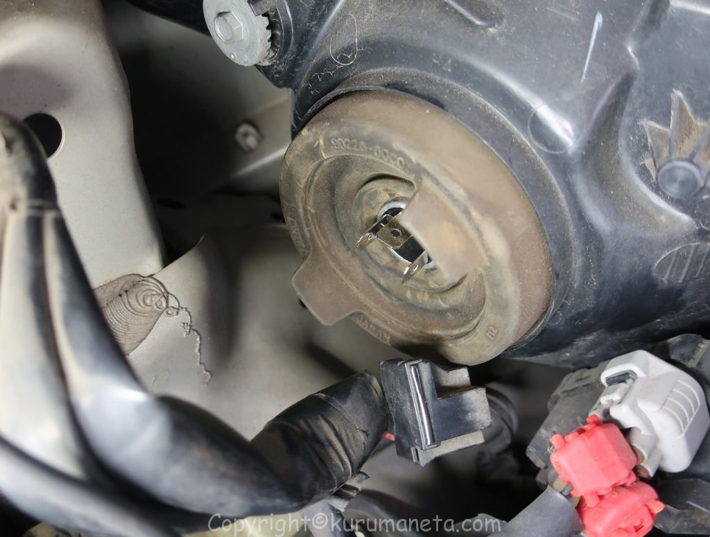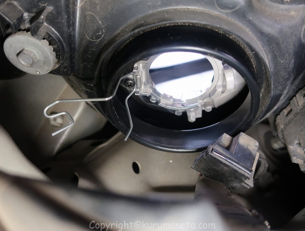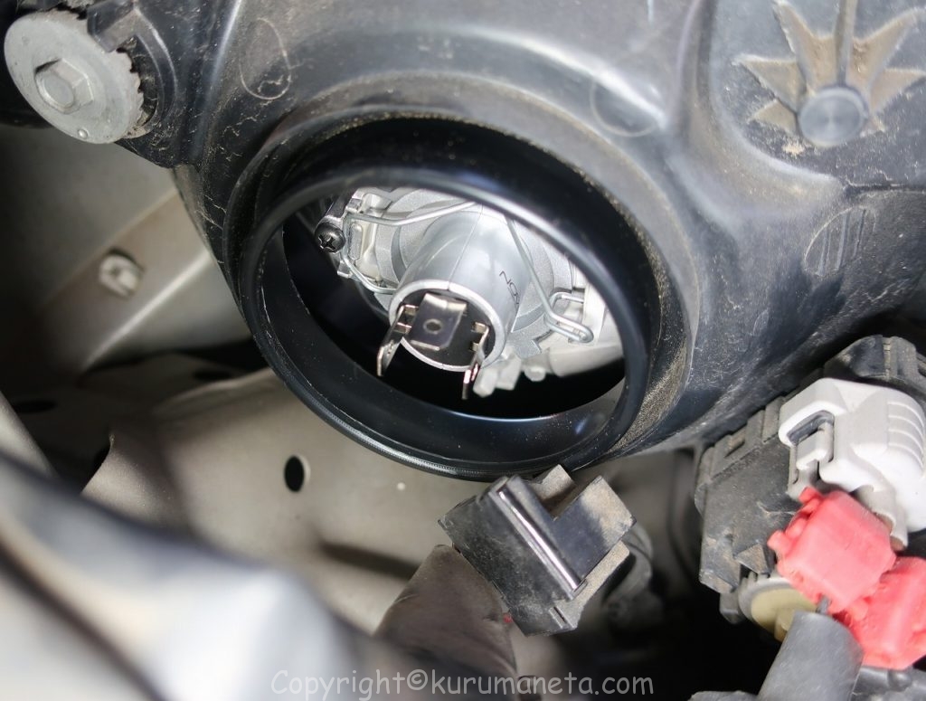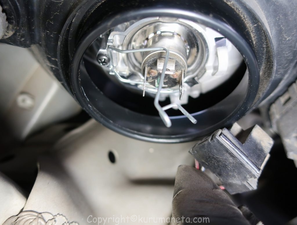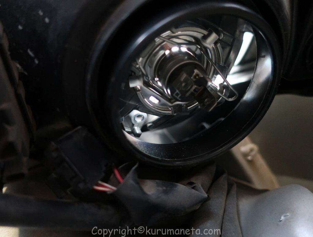 球も小さく、取り付け位置もヘッドライトよりも奥まった場所にあるので、作業難易度が上がります。