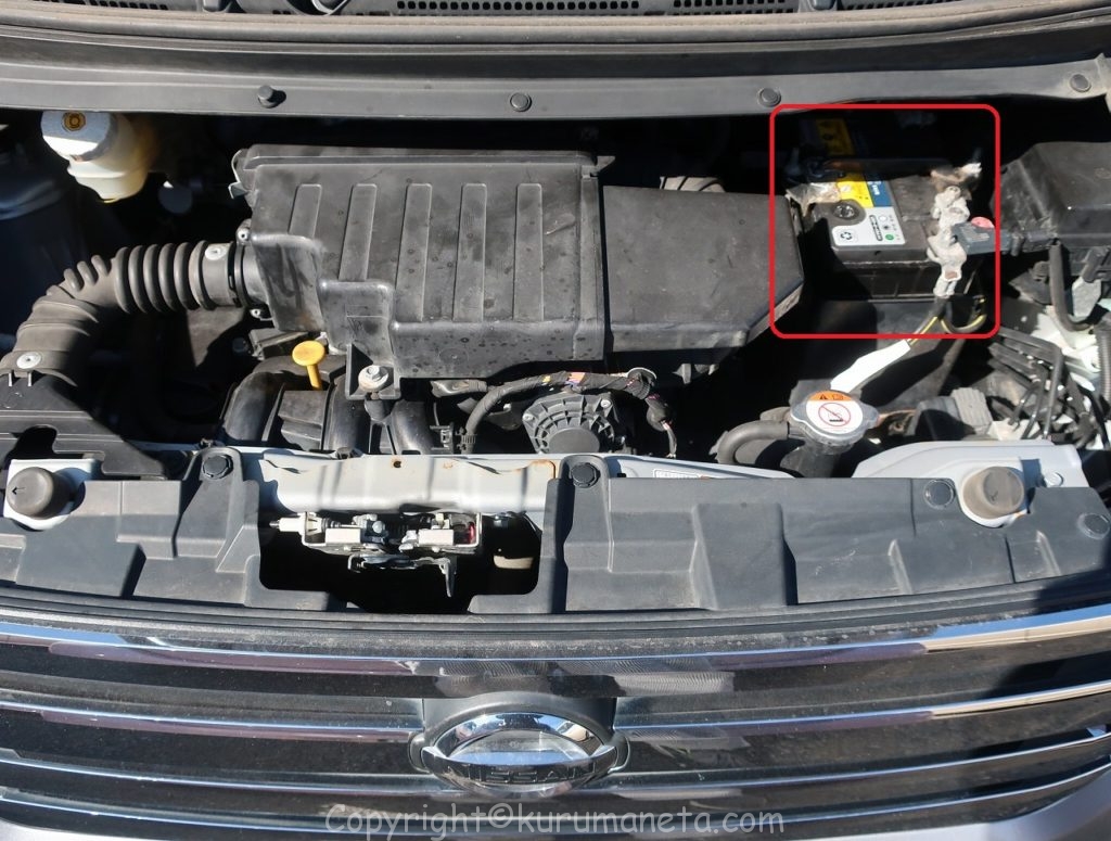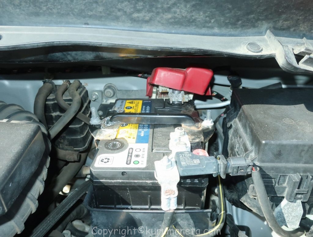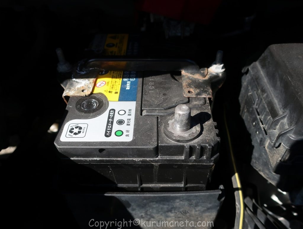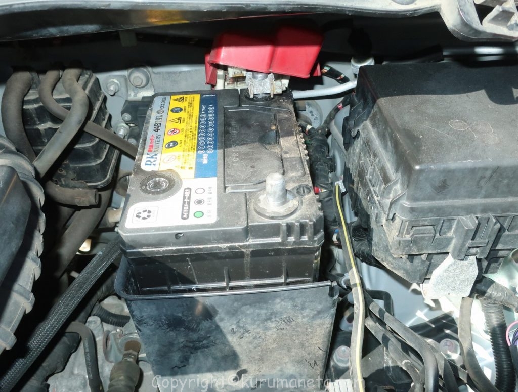 バッテリーはエンジンルームの向かって右側(助手席側)にあります