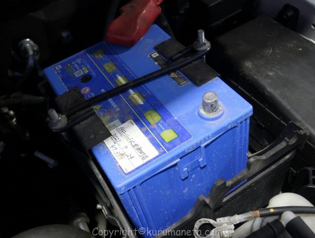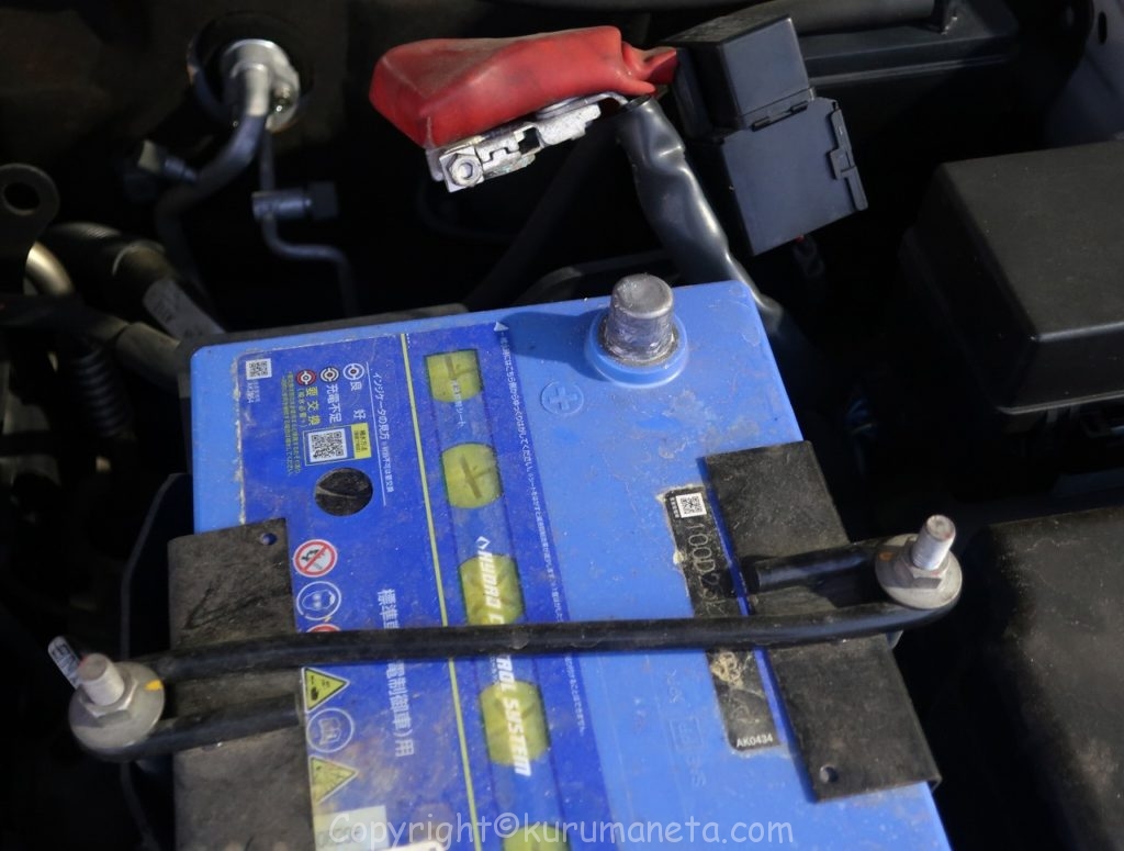 バッテリーはエンジンルームの向かって右側(助手席側)にあります。