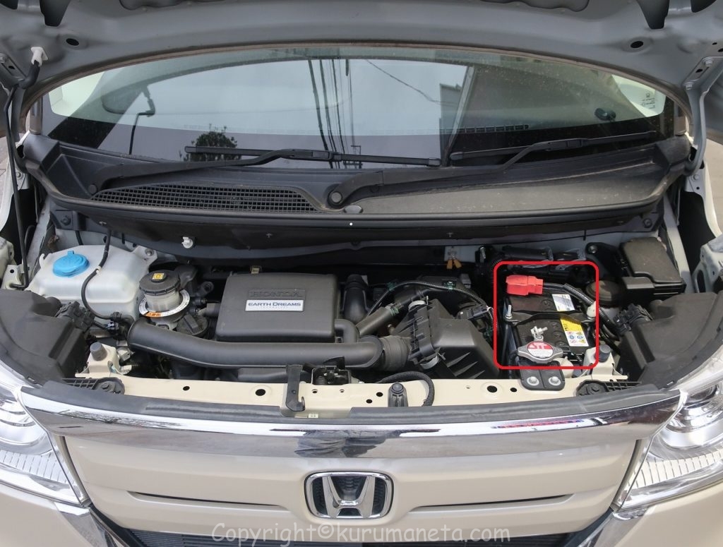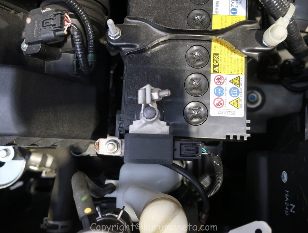 バッテリーはエンジンルーム内、助手席側にあります