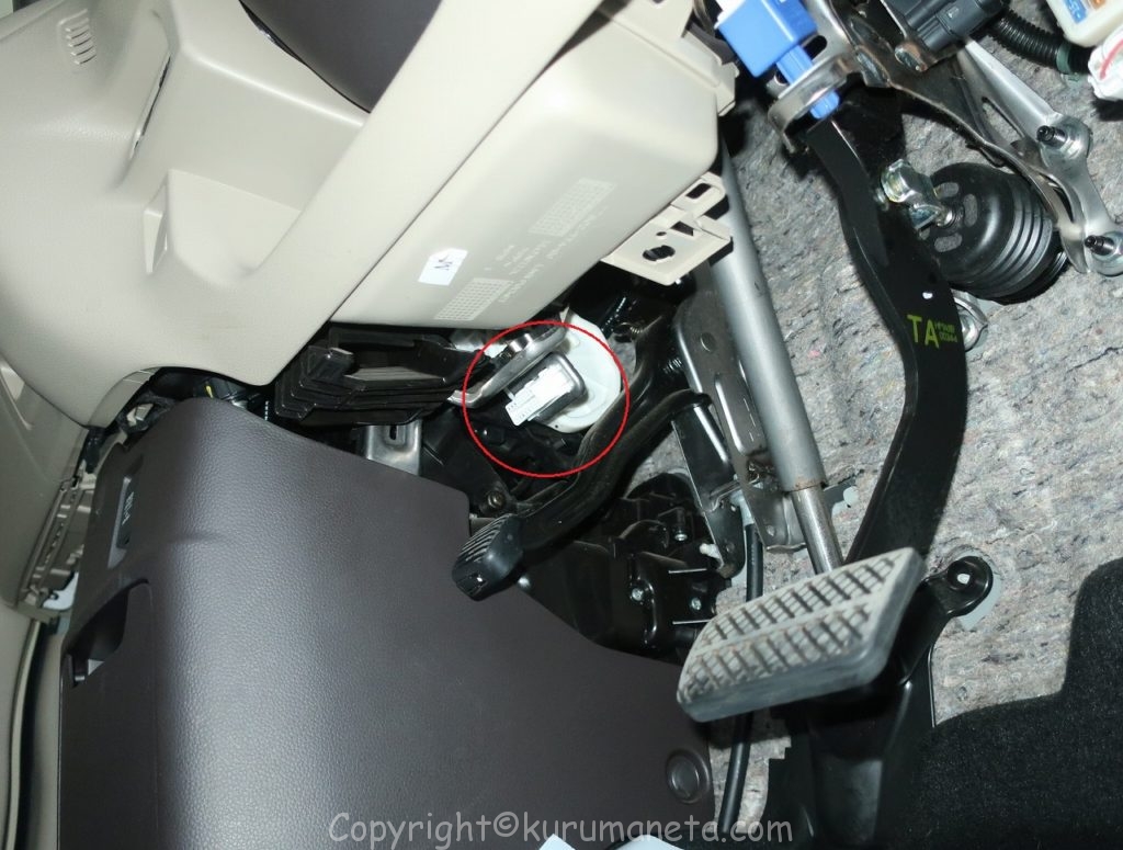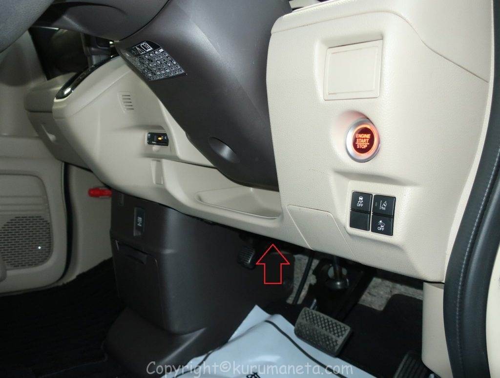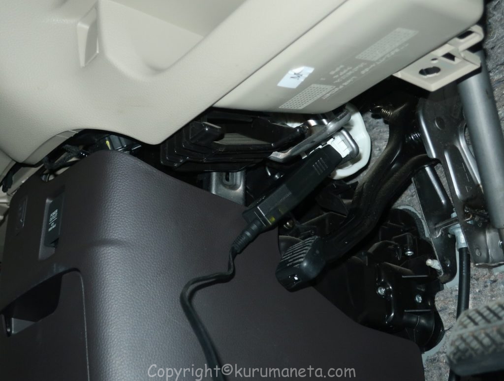 JF3型N-BOXのOBD2カプラーは運転席足元の写真の位置となります