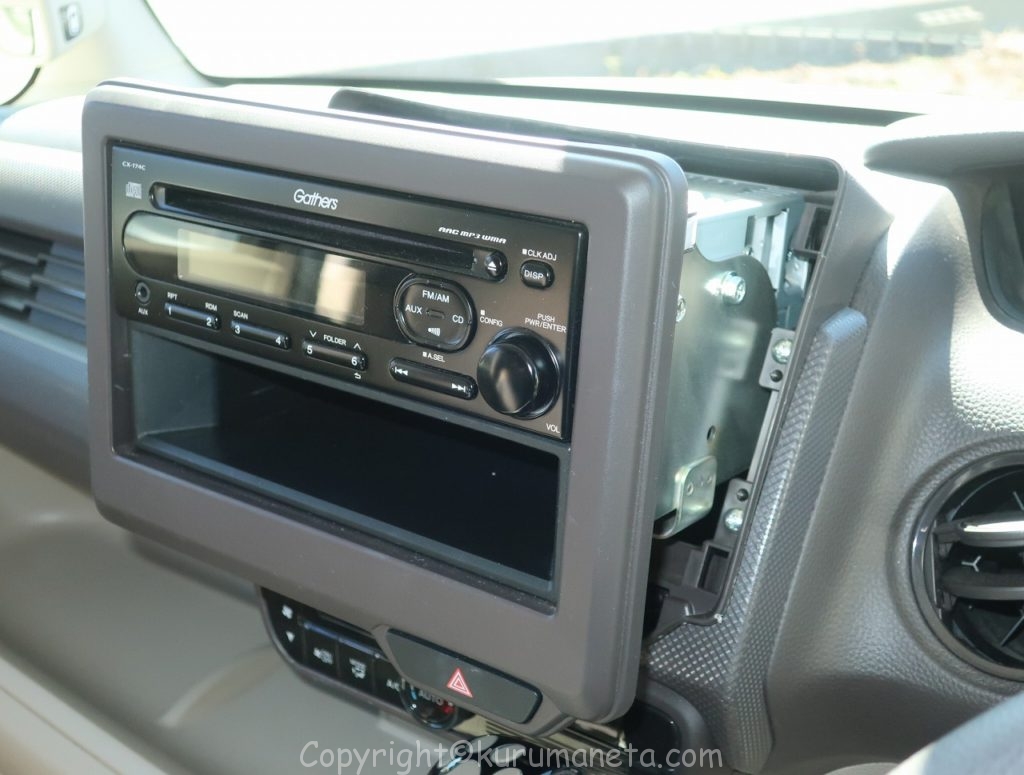 取付けられているオーディオを取り外して、ナビと交換します。