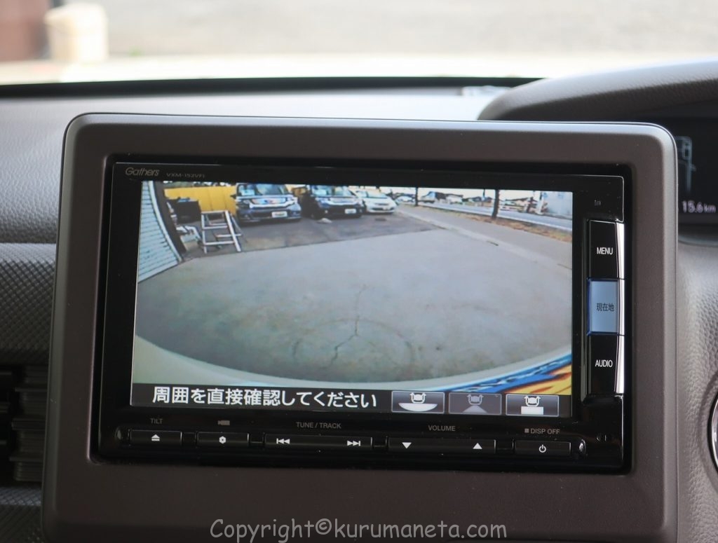 純正オーディオが取り付けられていますが、ナビ装着用スペシャルパッケージなのでバックカメラやステアリングスイッチが備え付けられている状態です。