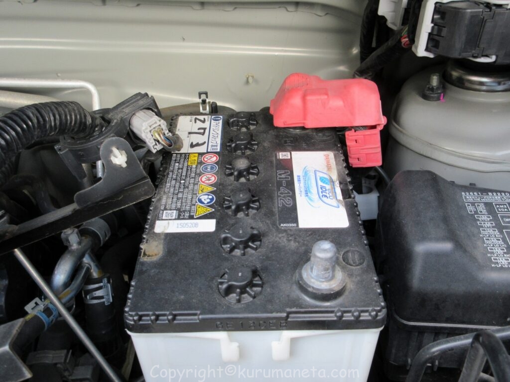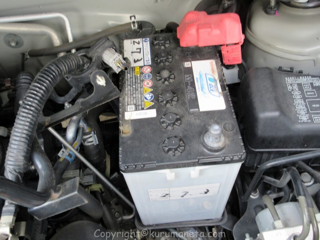 バッテリーはエンジンルーム内、助手席側にあります