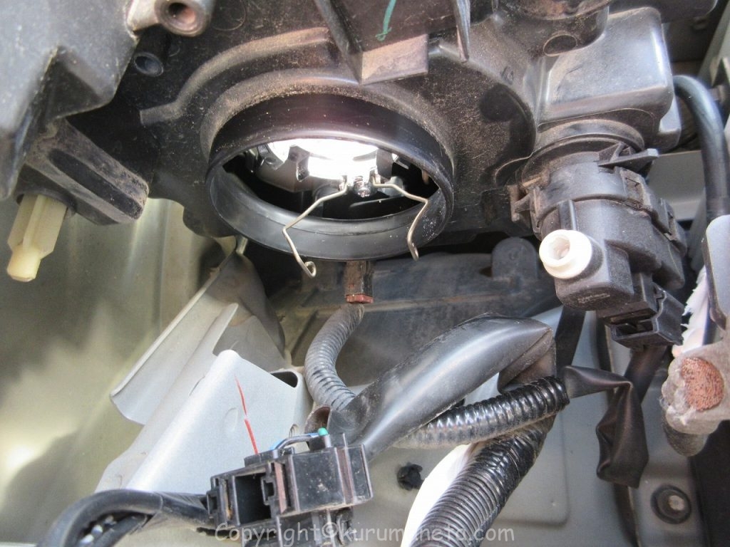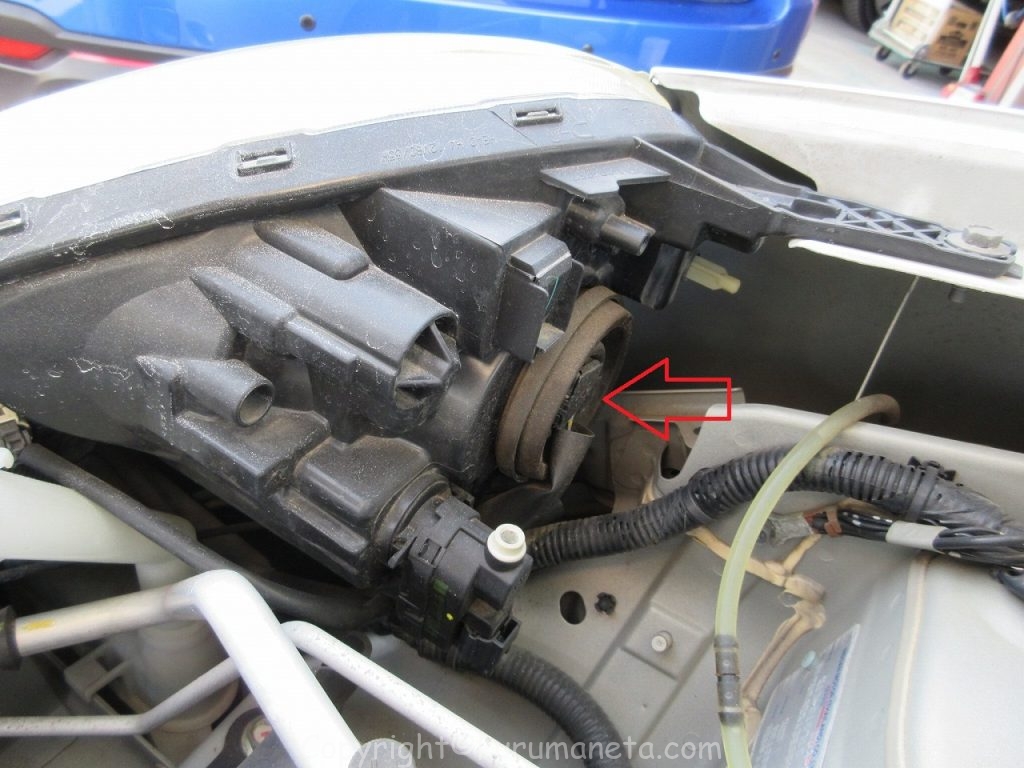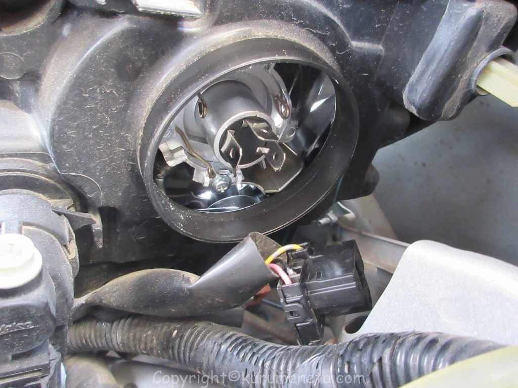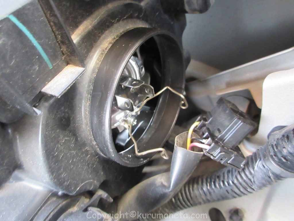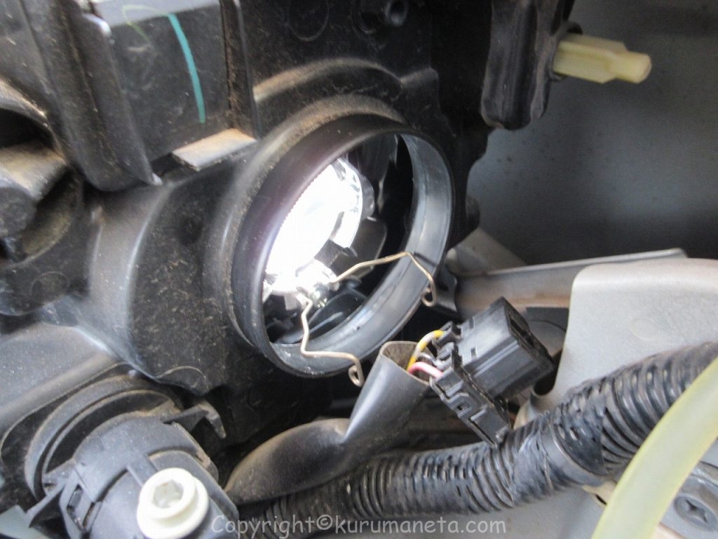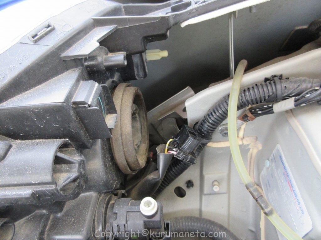 ヘッドライトの裏側を見ると黒いカプラーがささってるので外します。