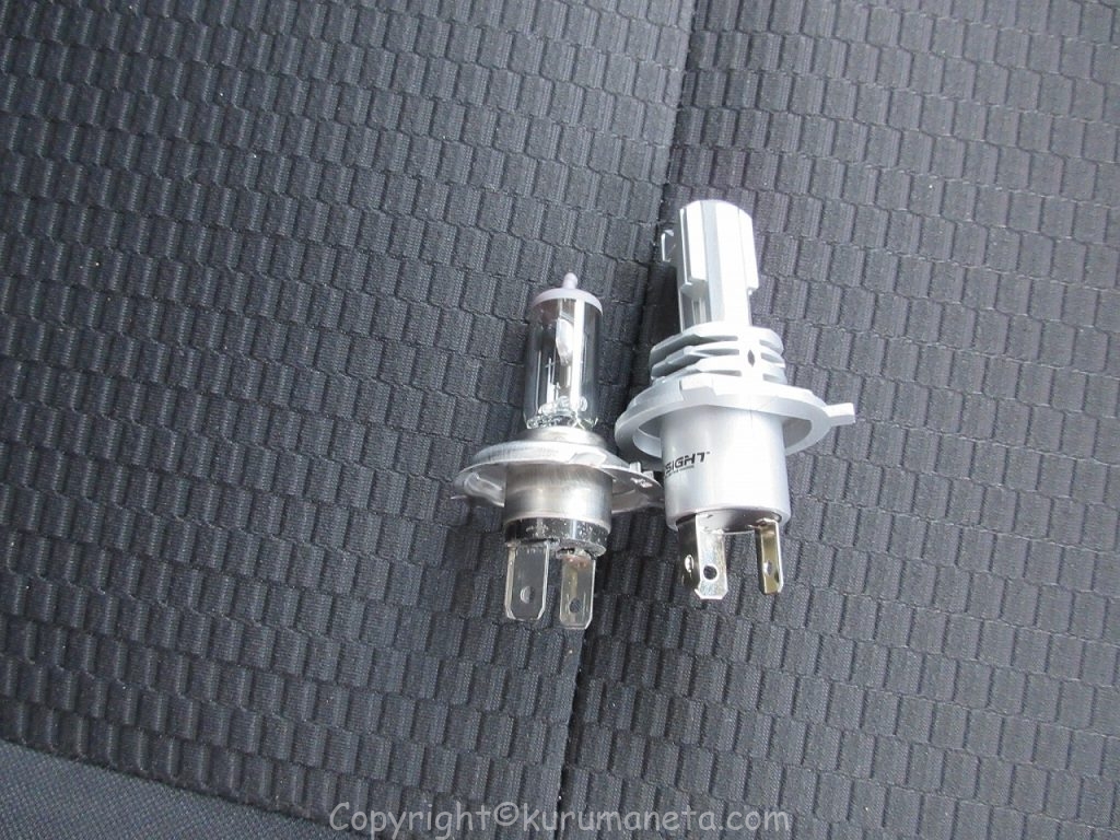 左がもともと付いていたハロゲンランプ、右が取り付けるLEDランプです。